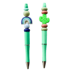 These pens have a twist mechanism to reveal the black ballpoint and come with three refills. The body is made of durable plastic, and each pen includes a fun novelty silicone bead.
