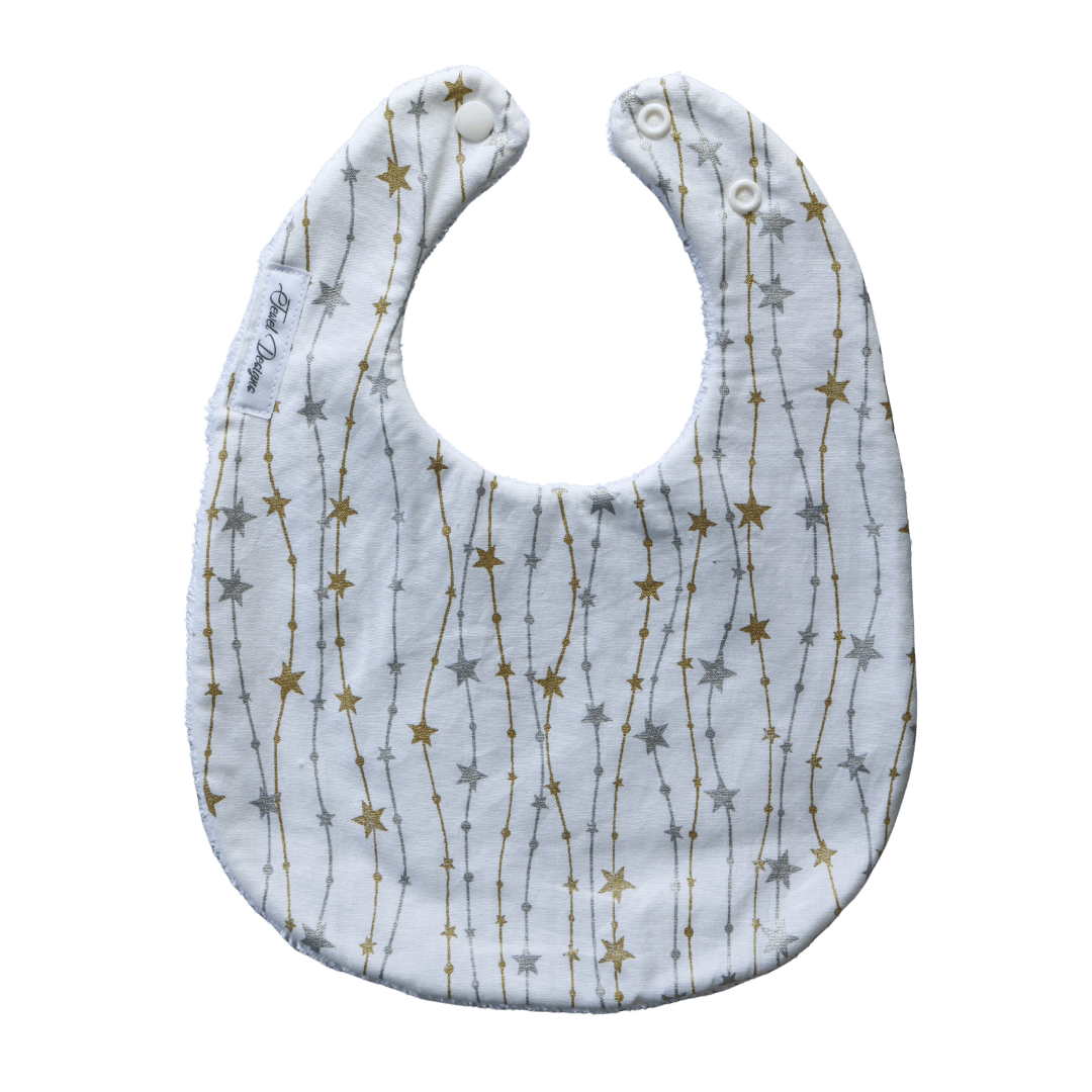 Feeder Bibs are a stylish way to protect clothing and keep little ones clean and dry, perfect for messy eaters or drooling babies. Each bib is lovingly made with a towel backing and two snap domes to adjust the neck size as your baby grows.
